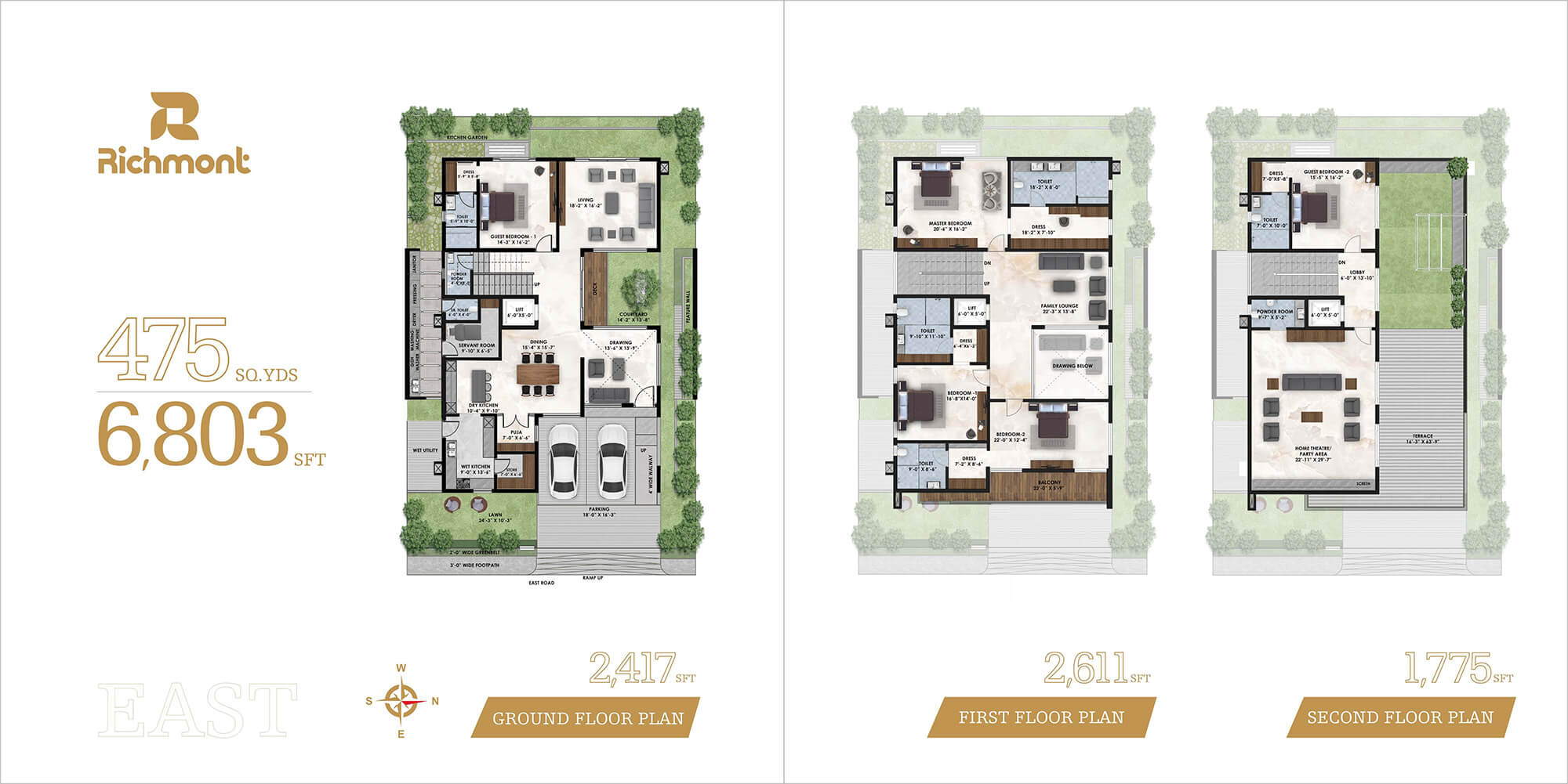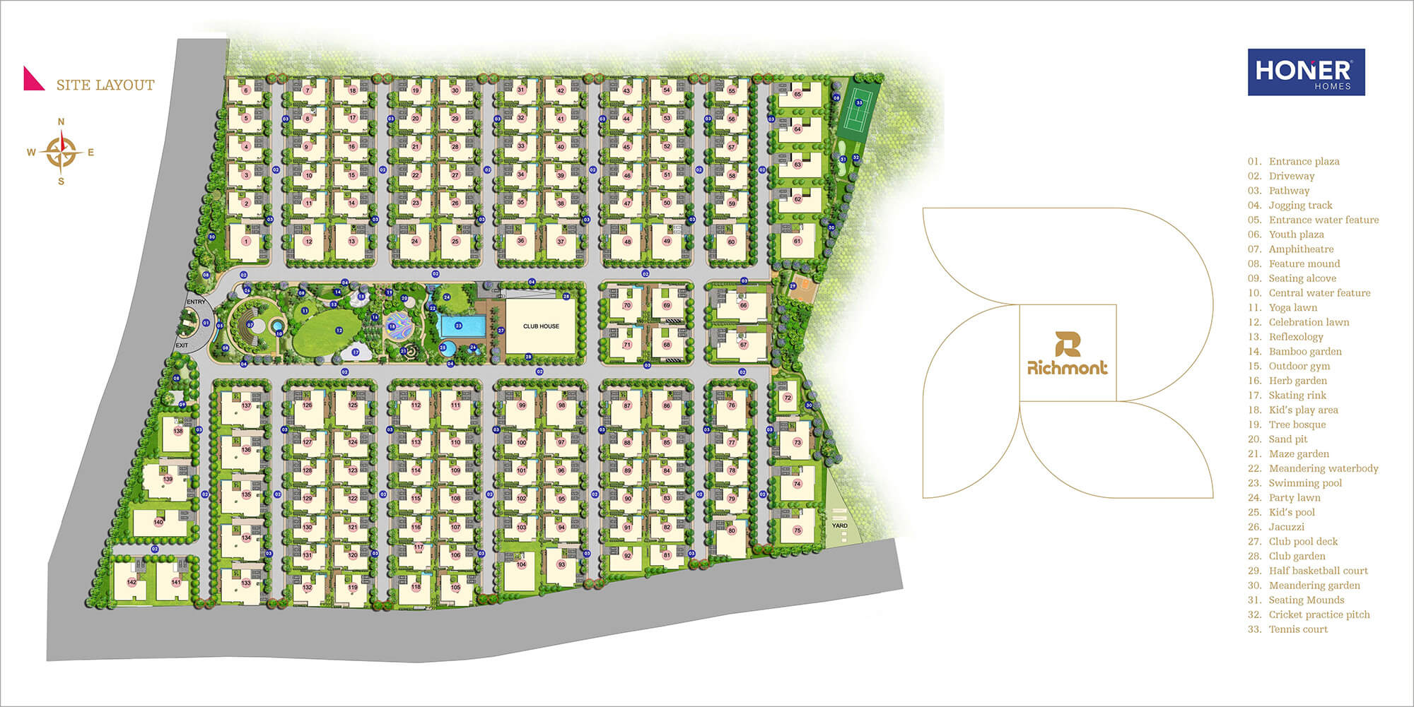 Each Honer Richmont mansion represents an architectural marvel that not only comprises spacious rooms but exclusive features and amenities like a lawn, deck area, amphitheatre, dry and wet kitchen and diverse aesthetic seating arrangements, double-height seating area and much more. Be it spending time witnessing magnificent nature or organizing a cosy house party at the open terrace party area - with Honer Richmont, all can be done seamlessly. With Honer Richmont, embrace the life you deserve.